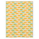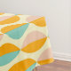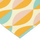 Repeating geometric pattern with overlapping leaf shapes in orange, teal, and pink on a beige background. The design conveys a retro, vibrant feel.