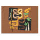 Esta antigua inscripción muestra a un hombre de una antigua tribu dedicada a realizar rituales sagrados tribales. En su mano izquierda, sostiene un plato adornado con una llama de fuego, que simboliza el significado del fuego en estos rituales. Su otra mano agarra dos lanzas de caza o lucha, representando las habilidades y herramientas usadas por la tribu. El lugar se ve reforzado por la presencia de palmeras que le confieren un toque natural. Esta intrincada representación se encuentra en una placa de inscripción notablemente antigua de la era azteca o maya, que refleja las prácticas y creencias culturales de esa época.