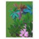 Diseño moderno con manteles de mesa de hojas verdes y rosas.