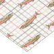 Fabuloso salmón Chinook — también conocido como salmón rey, salmón de Quinnat, salmón de primavera y salmón de Tiro. Un gran salmón rey es una captura muy deseada y muy preciada para el deportista. El salmón Chinook adulto puede alcanzar entre 55 y 60 pulgadas de longitud y hasta 130 libras. En 1985 se estableció el récord de pesca deportiva del salmón rey a 97,25 libras; mientras que el récord mundial de capturas comerciales se fijó a fines de los 70 a 126 libras. Antes de regresar a sus ríos de origen para desovar, Chinook puede pasar de uno a ocho años en el océano. Aunque se encuentra de forma natural en las aguas del noroeste del Pacífico, incluyendo partes de Canadá y Alaska, el salmón de Chinook también se ha introducido con éxito en algunas regiones de los Grandes Lagos. A los pescadores serios les encantaría tener la oportunidad de pescar salmón rey debido a la lucha que una vez engancharon. La mayoría de la gente también está al tanto de los beneficios para la salud de comer salmón: los ácidos grasos omega-3 ricos, la vitamina D y el selenio. Salmon también contiene péptidos bioactivos que podrían proporcionar protección para el cartílago articular, apoyar la eficacia de la insulina y controlar la inflamación digestiva. Sin embargo, es posible que NO sepan que estos beneficios sólo se derivan del salmón WILD. El salmón de piscifactoría tiene dramáticamente menos beneficios para la salud. Así que, la próxima vez que tu pescador favorito quiera ir a pescar salmón Chinook — ¡espero que traiga a casa una gran trampa! Este maravilloso diseño es una celebración del salmón Chinook, que incluye "escuelas" de peces nadando hacia y desde un mar de manta coordinada por colores. Ya sea que estés tratando de vestir tu pabellón de pesca o de organizar una cena de pescado frito o salmón, este fabuloso mantel es tan funcional como hermoso.