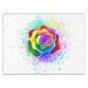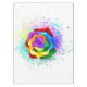 Rosa grande y floreciente con pétalos de arco iris sobre fondo blanco, pintado con salpicaduras de pintura colorida y brillante. 3.ª
