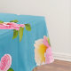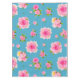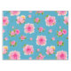 Un patrón vibrante y continuo de rosas rosadas y hojas verdes contra un fondo azul brillante, que evoca una estética floral alegre y elegante.