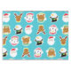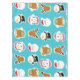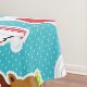 Caras de manteles de Navidades, coloridas y divertidas, presenta puntos de polka blancos sobre fondo azul con Papá Noel, hombres de nieve, renos, osos de peluche y pingüinos!