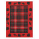 Cabaña rústica en el diseño de los bosques, con un revestimiento rojo, negro y crema. Banda roja gruesa con siluetas negras de árboles y alce. ¡El rojo es cambiable! Cambia el rojo por cualquier color que prefieras.