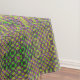 Un patrón geométrico complejo presenta colores vibrantes, como verdes, púrpura y azul, intrincadamente tejidos en un diseño simétrico repetitivo. Pequeños cuadrados y círculos forman un efecto caleidoscópico, creando un mosaico llamativo.