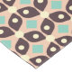 Seamless geometric pattern with dark brown leaf shapes, beige circles, and teal diamond accents. Retro and symmetrical design creates a vintage feel.