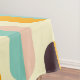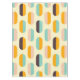 A seamless geometric pattern features vertical, oval shapes in soft yellow, teal, peach, orange, and brown, creating a retro, playful vibe.