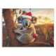 La koala australiana con un sombrero de santa sentada en un árbol de goma con Navidades baubles. Este koala peluda es un nativo de Australia que son fácilmente reconocibles por su cuerpo sin sastre y su gran cabeza con orejas redondas, esponjosas y nariz grande con forma de cuchara.