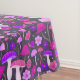 Este mantel está decorado con setas tripemente, psicodélicas ilustradas y flores en tonos rosa cálido y violeta.