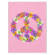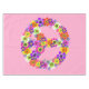 Un símbolo de paz floral en tonos rosa, amarillo, naranja, violeta, verde, blanco y negro.