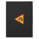 Signo de advertencia triangular con una silueta de pimienta y llama sobre fondo negro.