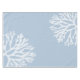 Este mantel entonado simple, azul claro ofrece dos siluetas del coral del mar.