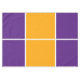 Este colorido diseño deportivo presenta una banda de carreras de dos tonos, dividida por una delgada franja blanca central. La banda central ancha interior es de color amarillo intenso y las rayas exteriores son de color púrpura real.