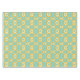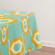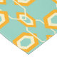 Stylized geometric pattern with bold orange hexagons and white details against a teal background, forming a repeating, symmetrical design.
