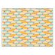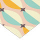 Symmetrical retro pattern with interlocking teal, yellow, and orange shapes on a beige background. Black star-like accents add contrast, creating a vintage feel.
