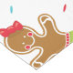 Un mantel de vacaciones divertido tiene un fondo blanco con confetti colorido y chicas de pan de jengibre con tutus verde y arcos rojos en el pelo.