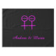 Este impresionante mantel está diseñado para lesbianas. Cuenta con dos símbolos femeninos rosados uno al lado del otro. El fondo es negro y hay un texto rosa personalizable dentro de cada uno de los símbolos para poner nombres. A continuación se presenta un texto bonito personalizado para los nombres de las parejas. Esto haría un gran mantel boda o fiesta de aniversario.