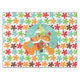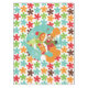 Manteles rojos de invierno de Fox, adorables, coloridos y tan divertidos para las vacaciones! Dos zorros rojos con gorras de invierno, pañuelos y arbustos, un árbol de Navidad decorado y cubierto de nieve, copos de nieve de blanco sobre una circular azul, y muchos copos de nieve con flores de bonito de color marrón, rojo, azul acuático, verde y dorado sobre un fondo blanco.