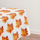 Manteles de algodón mostrados en blanco con un diseño impreso de hojas de otoño festivas. Viene en tres tamaños. Personalizar este artículo o compra tal cual.