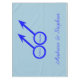 Este impresionante mantel está diseñado para hombres homosexuales. Presenta dos símbolos masculinos azules uno al lado del otro. El fondo es azul y hay un texto azul personalizable dentro de cada uno de los símbolos para poner nombres.
