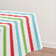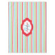 Rayas horizontales de manteles de vacaciones de Navidades rojos, blancos, azules y verdes con un banner central enmarcado de blanco y rojo con un área de texto rojo para añadir tu apellido, área de texto azul para añadir tu monograma inicial!