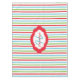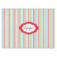 Rayas verticales de manteles de vacaciones de Navidades rojos, blancos, azules y verdes con un banner con marco central de blanco y rojo con área de texto rojo para añadir tu apellido, área de texto azul para añadir tu monograma inicial!