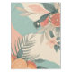 Aves que rebosan de vegetación tropical, diseño vectorial moderno en tonos pastel con palmeras, flores y fruta.