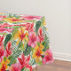 El mantel de algodón se muestra en una bonita huella de flores tropicales. Viene en tres tamaños. Personalizar este artículo o compra tal cual. Imagen con licencia