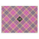 Tartán rosa, amarillo dorado y azul. Patrón sin foco. Monograma personalizado.