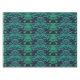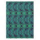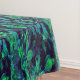 El patrón de tela abstracto y original de este mantel fue creado a partir de una fotografía original de un árbol real de la poinciana. Algunas de las hojas tropicales del árbol están bajo la luz del sol, en verdes amarillos brillantes. Otras están a la sombra, en tonos azules, desde el agua hasta el verde azulado profundo, con toques violetas. El fondo es casi negro. El diseño tiene una textura general de tela.