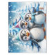 Tres adorables pingüinos están parados en festivos gorras de invierno y coloridas bufandas. Sus grandes ojos redondos brillan de alegría, mientras que sus esponjosas campanas blancas contrastan con el brillante árbol de Navidad azul decorado con luces brillantes. Los pingüinos sonríen alegremente y parecen listos para celebrar la magia de la temporada navideña. A su alrededor, delicados copos de nieve bailan a través del aire, mientras las estrellas brillan en el cielo, creando un ambiente cálido y festivo. Este diseño captura perfectamente el espíritu de los Navidades - lleno de alegría, amistad y maravilla de invierno!
