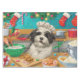 Disfrute de la alegría de hacer sus vacaciones en esta deliciosa escena de un chef alegre rodeado de Navidades y decoraciones festivas. Una cálida celebración de las tradiciones más dulces de la temporada.