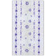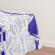 Este mantel tiene el adorno clásico de la campana-y-granada en azul con hojas y una estrella de David, y las palabras "Mazal Tov," y "Siman Tov" en hebreo.