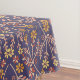 Seamless floral pattern with pink, orange, and yellow flowers and vines on a dark purple background, conveying a lively and whimsical feel.