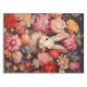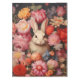 Encanto vintage y escena de fantasía primaveral con un divertido conejo blanco en medio de un vibrante ramo de flores de inspiración vintage.