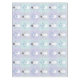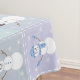 Cuatro cuadrados de azul pálido y morado están decorados con hombres de nieve que llevan gorros y ropa de invierno, como toboganes, pañuelos y mitones. El punzonado blanco aporta un toque decorativo, dando a la tónica repetida la apariencia de un edredón, creando un ambiente muy acogedor para el invierno.