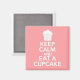 Este es un imán divertido basado en el popular tema Mantener la calma. Un gran artículo para los amantes de los quequitos.