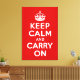 Una reproducción del afiche vintage "Keep Calm and Carry On" (Mantengan la calma y sigan adelante) en la impresión de lona envuelta.