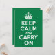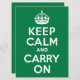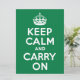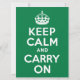 Mantener la calma y continuar con el diseño de estilo vintage sobre el verde arcoiris brillante.