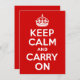 Rojo y blanco "Keep Calm and Carry On" versión moderna de poster clásico.