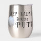 El vaso de vino de acero inoxidable incluye el mantra de los golfistas... "MANTENGA CALMA Y Sink el PUTT".