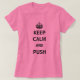 Adorable camiseta de "mantener la calma y empujar" por maternidad para que la madre esté con letras negras sobre fondo claro. Prepárate para el trabajo y el parto con esta divertida ropa de ducha para la nueva madre. Del clásico "ten calma y sigue" el tema de la parafernalia británica.