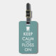 Manténgase tranquilo y colóquese sobre la etiqueta del equipaje con el logotipo de los dientes. Personalizable para bolsas de viaje y maletas. diseño de personalizable vintage para viajeros. Verde azulado o de cualquier color personalizado. Crea tu propio gracioso Mantenete tranquilo y sigue con la parodia de la odontología. El color de fondo y el texto se pueden cambiar.
