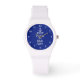 Para los aficionados a la vela, ten la calma y navega con la idea de un reloj de pulsera náutica. Colores de personalizable. Plantilla de tipografía de Keepcalm de época con silueta de ancla de barco blanco. Color y texto de fondo azul marino personalizable. Cuta idea de regalo de cumpleaños para chica, adolescente, novia, esposa marinera, mamá, amiga, compañera de trabajo, colega, hermana, tía, abuela, etc.