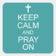Este "Keep Calm" y "Pray On pegatina" con una cruz encima sería perfecto para tener como incentivo a cristianos, creyentes cristianos, padres e hijos por igual. Personalice este pegatina cambiando el color de fondo.