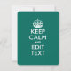 Tu fiesta personalizada Sigue tranquilo diciendo sobre un regalo de decoración turquesa de estilo personalizado. Un dicho de estilo "Keep Calm" personalizado. Intenta con humor o capricho con tus palabras creativas en dos líneas editables de texto. Recuerde usar las letras CAPITAL para obtener los mejores resultados. Los diseños de bordado están disponibles en una amplia selección de opciones de color populares. Utilice el vínculo "Preguntar a este diseñador" para contactarnos con sus solicitudes de diseño especiales o para obtener ayuda con sus proyectos de personalización.