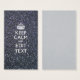 Tu personalizado "Keep Calm" que dice sobre una bonita decoración de estilo espumoso azul medianoche. Un estilo "Keep Calm" personalizado que dice sobre un regalo amable. Intenta con humor o capricho con tus palabras creativas en dos líneas editables de texto. Recuerde usar las letras CAPITAL para obtener los mejores resultados. Utilice el vínculo "Preguntar a este diseñador" para contactarnos con sus solicitudes de diseño especiales o para obtener ayuda con sus necesidades de personalización.