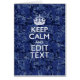Tu "Keep Calm" personalizado dice sobre una decoración de camuflaje digital de color azul marino. Un estilo "Keep Calm" personalizado que dice sobre un regalo amable. Intenta con humor o capricho con tus palabras creativas en dos líneas editables de texto. Recuerde usar las letras CAPITAL para obtener los mejores resultados. Utilice el vínculo "Preguntar a este diseñador" para contactarnos con sus solicitudes de diseño especiales o para obtener ayuda con sus necesidades de personalización.