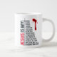 Jumbo Algunos días, una taza de jue de tamaño normal no sirve. Cuando necesites un toque extra de cafeína, saca esta taza gigante de café de Zazzle. Tiene capacidad suficiente para una medida Venti (20 onzas). ¡Y también la pudes usar para tomar sopa, cereales o incluso helado! Esta taza gigante cuenta con un asa en forma de "C" para mayor comodidad. Dimensiones: Altura: 4,5" Diámetro: 3,9" Capacidad: 20 onzas Caja fuerte de microondas y lavavajillas Construcción fuerte, cerámica Cumple o excede los requisitos de la FDA para el diseño de seguridad de alimentos y bebidas Consejo: Para garantizar la impresión de máxima calidad, tenga en cuenta que el área de diseño de personalizables de este producto mide 4" de alto x 10,5" de ancho