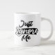 Jumbo Algunos días, una taza de jue de tamaño normal no sirve. Cuando necesites un toque extra de cafeína, saca esta taza gigante de café de Zazzle. Tiene capacidad suficiente para una medida Venti (20 onzas). ¡Y también la pudes usar para tomar sopa, cereales o incluso helado! Esta taza gigante cuenta con un asa en forma de "C" para mayor comodidad. Dimensiones: Altura: 4,5" Diámetro: 3,9" Capacidad: 20 onzas Caja fuerte de microondas y lavavajillas Construcción fuerte, cerámica Cumple o excede los requisitos de la FDA para el diseño de seguridad de alimentos y bebidas Consejo: Para garantizar la impresión de máxima calidad, tenga en cuenta que el área de diseño de personalizables de este producto mide 4" de alto x 10,5" de ancho